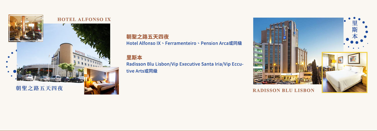 住宿:Radisson blu Lisbon或 Marriot Lisbon或同級