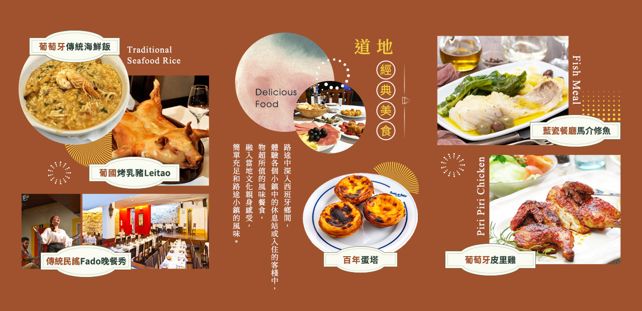 有著葡萄牙的威尼斯之稱,緊鄰大海與 ria(河口),一進到城市裡就可以看到湛藍的河水和色彩繽紛的摩裡西羅船(傳統漁船)在運河上悠然劃過,這種細長的彩繪船曾被用來收集水藻和海藻,如今則成了觀光船。我們特別安排搭乘貢朵拉彩船,欣賞兩岸十足葡萄牙風味的建築及橋樑,體驗伊比利半島上獨特的水都風情。阿維羅最具特色的甜品是一種用雞蛋和糖做成”(軟雞蛋) ovosmoles”已經成為這座城市的象徵,置於木桶中售賣,也可以用不同形狀的硬皮聖餅夾著吃