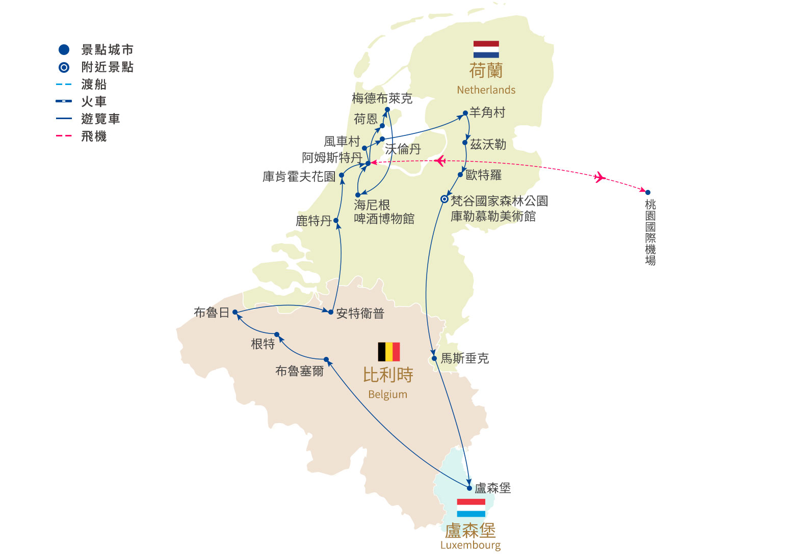 備註:如布魯日遇會展活動,飯店預訂客滿則改住宿於根特或安特衛普飯店,行程操作順序也會依照最順暢來做前後調整,不便之處 敬請見諒。