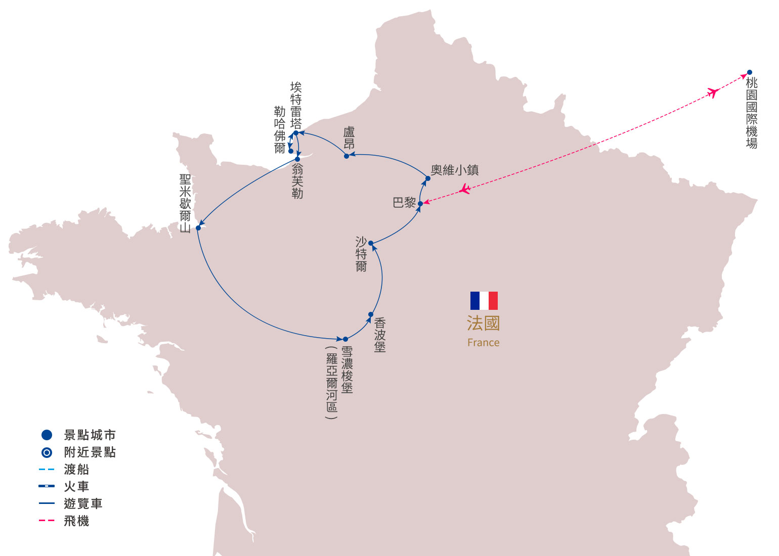| 法國 | 如團體行程未含小費,則司機導遊領隊服務小費,建議1天12歐元。 |