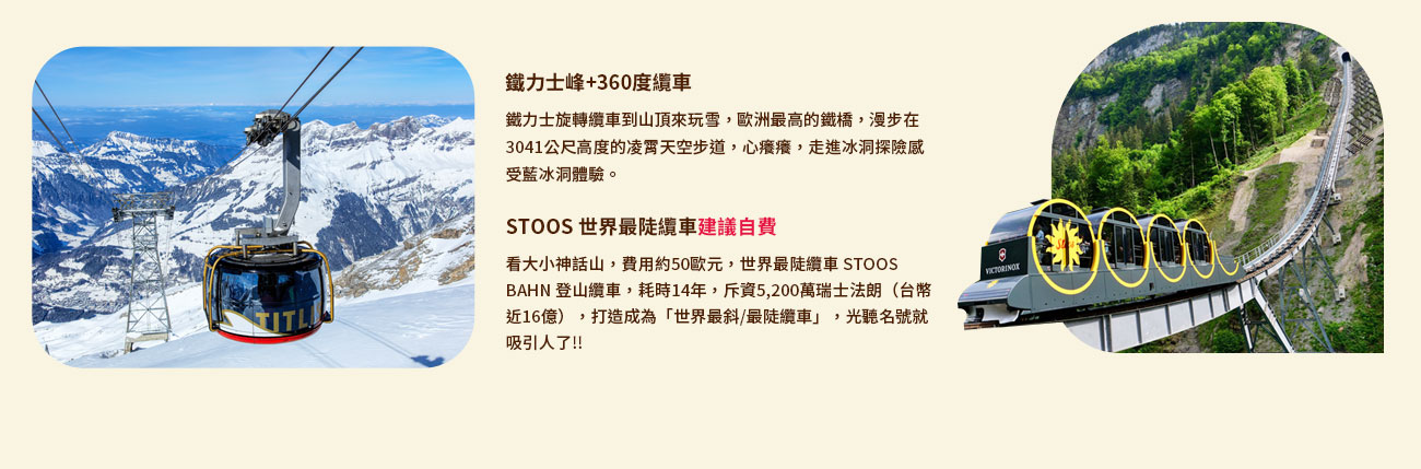 世界藏寶圖~德瑞鐵力士峰 山麓湖景列車10日